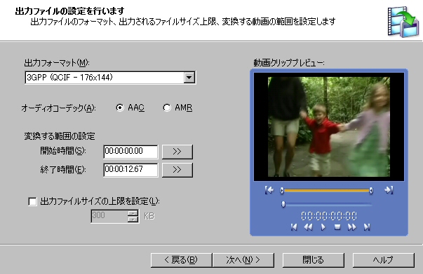 DVD(本編1時間50分)が1Gbyte程度のMPEGになりました。最後に,動画コンバータLEで3GPPに変換してできあがり。QCIFサイズで約80Mbyteに収まった。256MbyteのminiSDなら余裕で入ります。