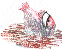 | 2日目,待ちに待った海です。船で1時間ほど行ったところにある「ざまみ島」に行きました。バスでビーチに着くと,さっそく海へ走っていきました。海の水はとう明で,砂の一つぶ一つぶがはっきりと見えました。波打ちぎわから5mほど行くと,急に深くなって,びっくりしました。もぐってみると,大人の手のひらぐらいのすき通った魚や,真っ青な魚たちがうようよいました。(クマノミやチョウチョウウオもきっといるはずだ。) でも,足のつかない所で長い時間泳いでいられません。そこで,お父さんに立ち泳ぎのし方を教えてもらいました。手は,バイバイするように動かし,足は八の字をえがくように動かします。スイミングで習ったスカーリングとにています。 |